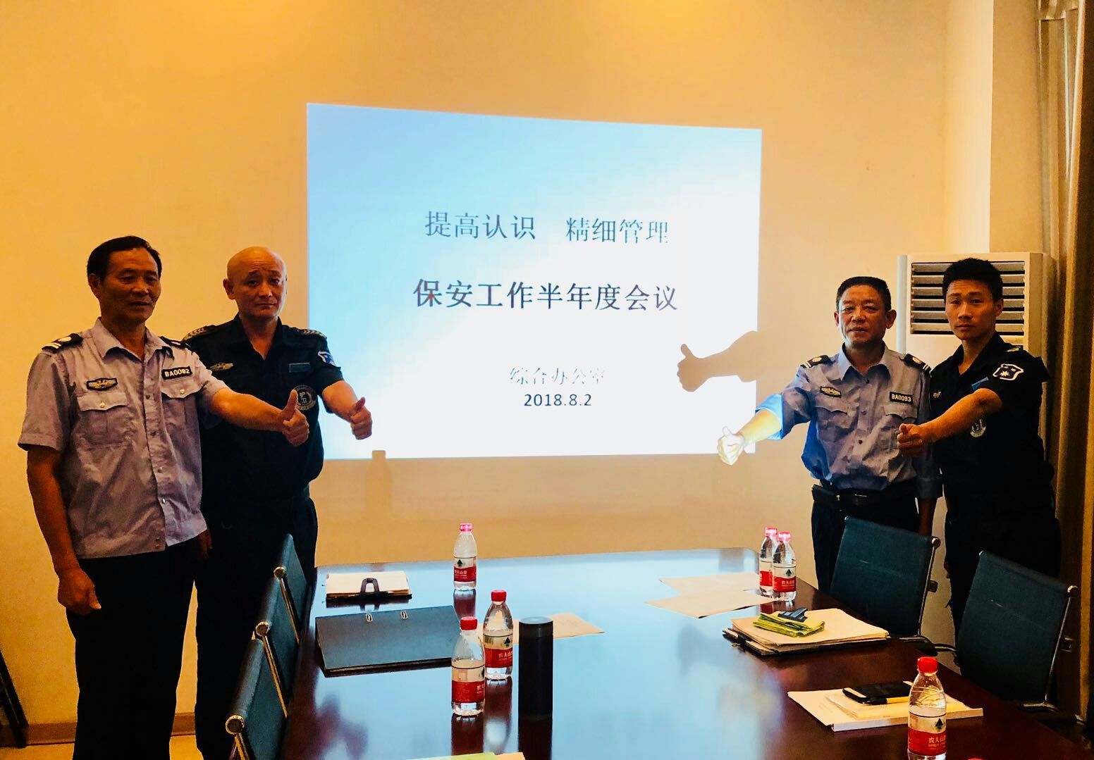 為了加強公司安保工作的對內(nèi)對外溝通,提升安保工作的服務質(zhì)量,2018年8月2日上午,以“提高認識,精細管理”為主題的朱養(yǎng)心2018安保半年度會議在下沙二樓會議室順利召開。四位保安著裝整齊,精神飽滿,積極參加了本次會議。