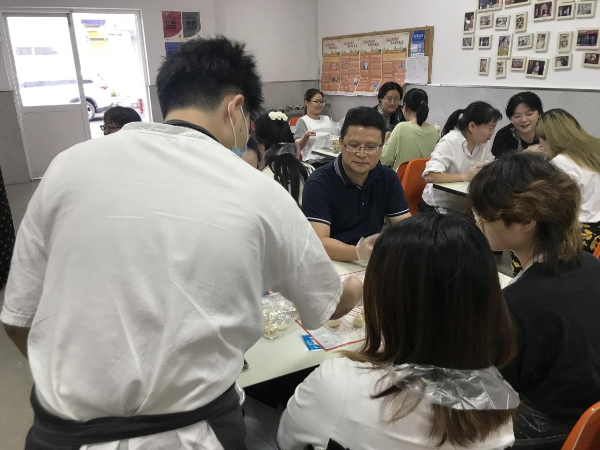 比賽開始前唐書記親自為我們示范月餅的制作,融入公司團員青年之中,感受公司年輕人的活力與朝氣,與團員青年親切交流。